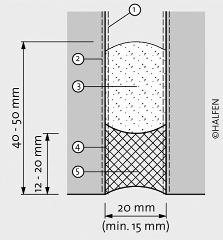• Die Fugenflanken müssen bis zu einer Tiefe der zweifachen Fugenbreite, mind. aber 30 mm, parallel verlaufen, damit das Hinterfüllmaterial ausreichenden Halt findet.